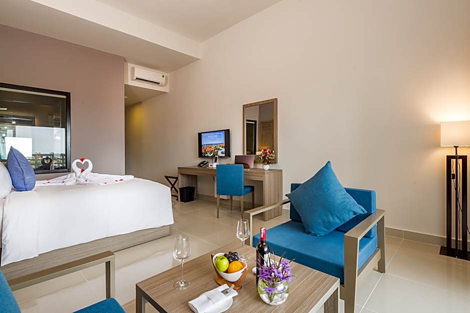 Grand Deluxe (with balcony) Double Bed is 538 square feet and includes a king-size bed 150-183 width plus balcony and extra beds on demand.
